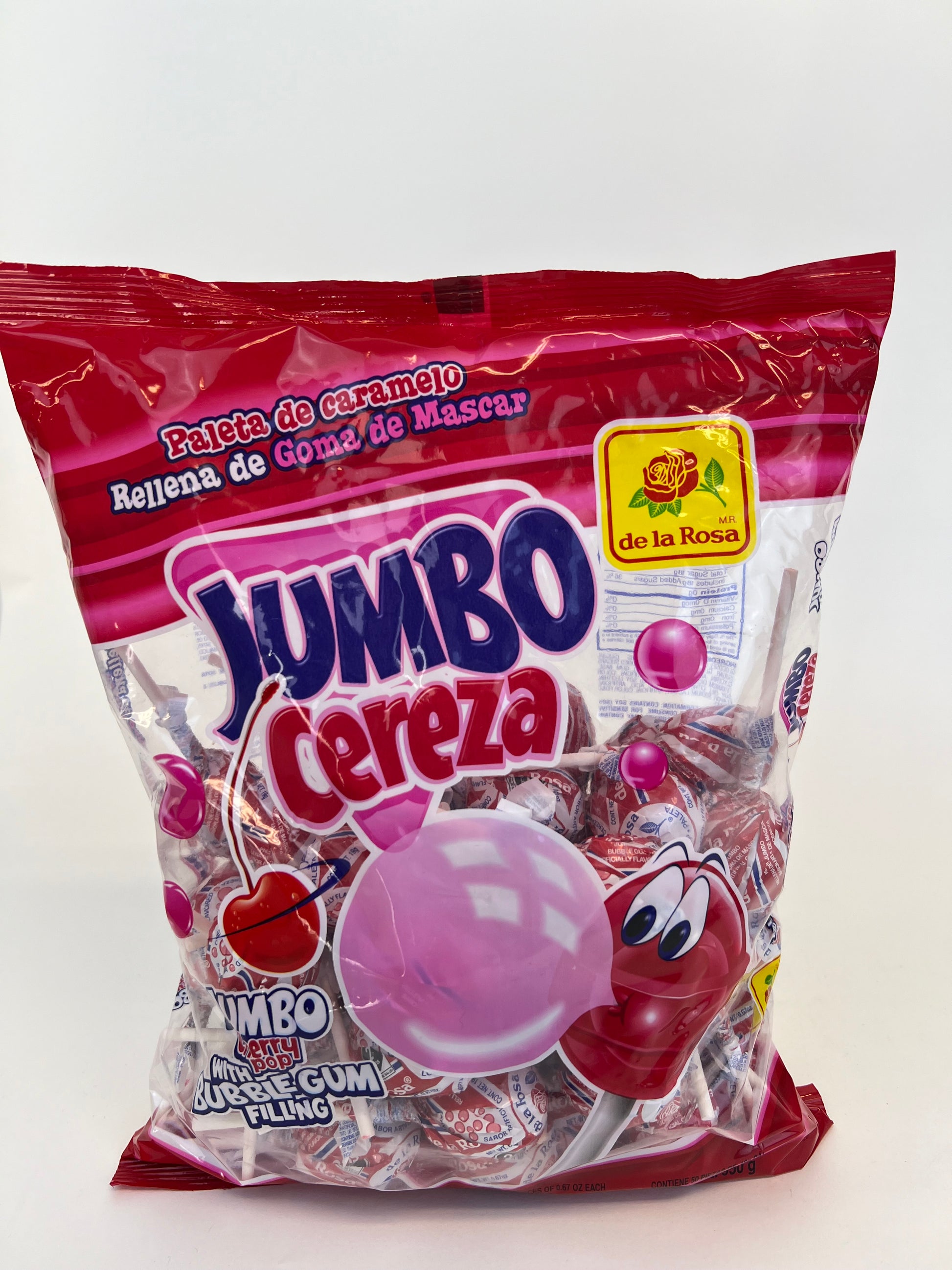 Jumbo cherry pop with bubble gum filling/ 50 ct